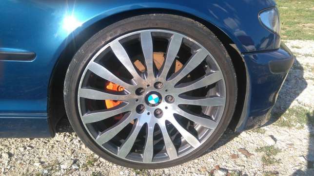 Przód 8" et 37, tył 9" et 39 , jak widać pasują również do E46. w zestawie 2 opony DUNLOP SP SPORT MAXX, przód 225/35 bieżnik 5mm . Brak tylnych opon.