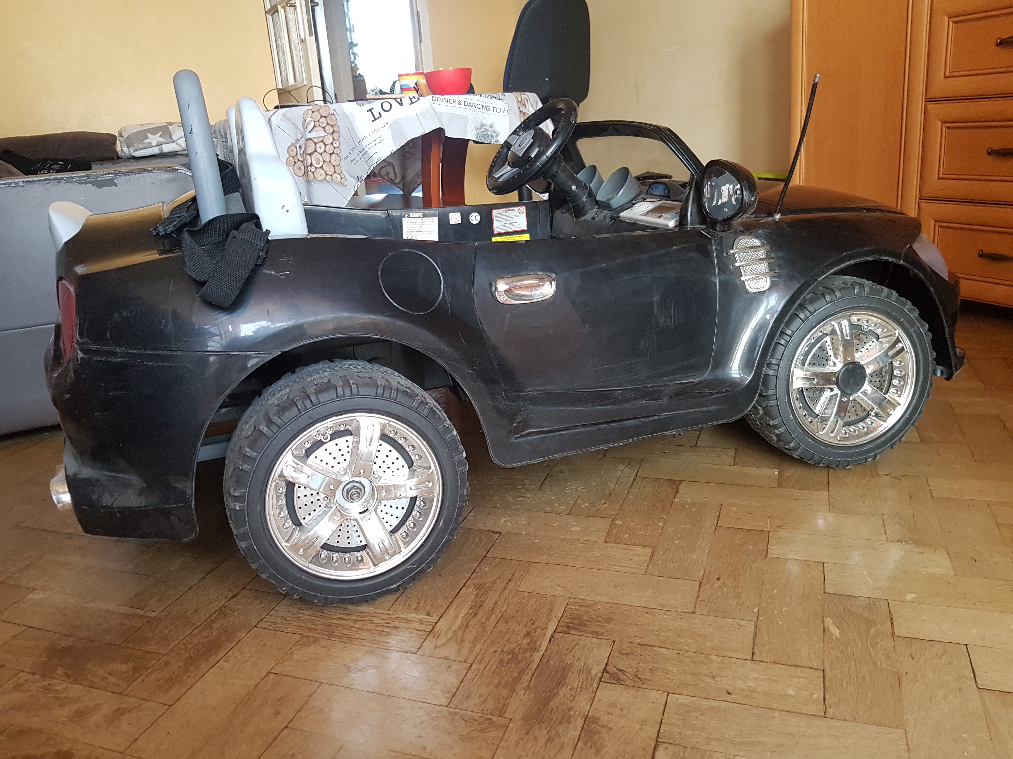 Forest Opublikowano 21 Kwietnia 2018 Zgłoś Udostępnij Opublikowano 21 Kwietnia 2018 Pierwszy właściciel, kupiona w PL, niski przebieg w 100% oryginalny, auto garażowane, wyprowadzana tylko w słoneczne dni, całą zimę i jesień spędziła w cieplutkim garażu z właściwą temperaturą i wilgotnością powietrza. Auto jest bezwypadkowe, złamany pałąk za siedzeniem kierowcy ale zapewniam, że nie było żadnego dachowania. Pierwszy lakier, kilka drobnych rys, spokojnie można spolerować dobrą pastą, przyda się też dokładne mycie glinką i nałożenie wosku. Właściciel niepalący, choinka zapachowa renomowanej firmy gratis. Zgadzam się na oględziny w dowolnej stacji diagnostycznej lub w warsztacie mechanicznym (na koszt kupującego). Auto nie jest obciążone postępowaniem komorniczym, prawami z tytułu wyroków sądowych ani osób trzecich. P.S. Auto na letnich felgach i oponach, zimówek nie ma w komplecie. Rozkodowany VIN: -mpakiet -pilot zdalnego sterowania -przełącznik do kontroli pojazdu pilotem -przełącznik do sterowania pojazdu ręcznie -2 biegi -pedał gazu -światła świecące w trakcie jazdy -lewarek do zmiany biegów (dwa w przód, jeden w tył) -napęd na oba tylne koła !!!!!!!!!! -pasy bezpieczeństwa -włącznik -wyłącznik zasilania -elektryczny hamulec, działający po zdjęciu nogi z pedału gazu -cyfrowe radio z wejściem na MP3 -duże koła otoczone gumowym bieżnikiem zapewniającym komfortową jazdę po twardym podłożu -duże wygodnie wyprofilowane siedzenie kubełkowe z pasami bezpieczeństwa, -kierownica multifukncyjna z efektami dźwiękowymi (syrena , klakson) -ładowarkę sieciową -felgi w kolorze chromu Czas ładowania 8 - 10 h Prędkość pojazdu do 6km/h Czas jazdy 1-2 h Max. obciążenie pojazdu 40 kg Dwa przełączniki do wyboru sterowania pojazdem : - manualna - za pomocą pilota Nie interesuje mnie zamiana na inne auto, turecki dywan czy sokowirówkę. Cena - 300 zł. 1 Odnośnik do komentarza Udostępnij na innych stronach Więcej opcji udostępniania...