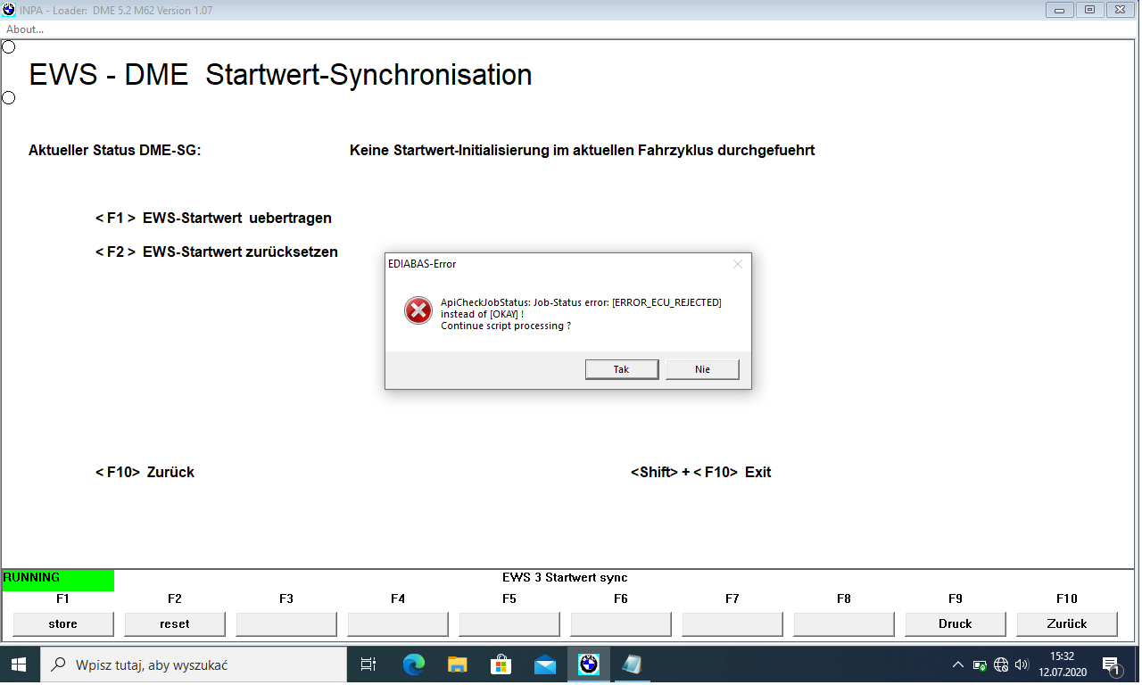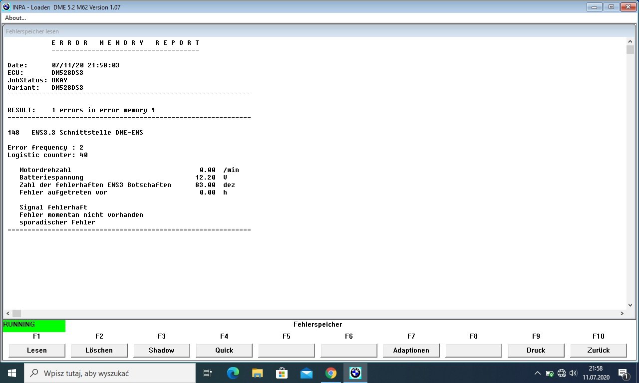 knxtxx Opublikowano 14 Lipca 2020 Zgłoś Udostępnij Opublikowano 14 Lipca 2020 (edytowane) Cześć Głupio wyszło jak trwoga to do boga ale chłopaki, czuje że to kres moich umiejętności a auto stoi i po prostu mogę tylko popatrzeć na V ... Nie mogę synchronizować klucza wywala bład ECU ERROR , skasowałem błedy z EWS , łączy sie bez problemu jest faktem to że wszystko działa oprócz tego że nie jezdzi XD Musze luczykiem poruszac przy tej ring antence bo jest uszkodzona i wejscie zmostkowałem no ale jak widac na screenie działa i nawet potem te zera zmieniają sie ale dosc szybko sie gubi (zamowiłem nową) Aha, dodam że krece rozrusznik na krótko, mam chyba jeszcze jakas przerwe w stacyjce ale chce go uruchomić po prostu. Kręci nie odpala, odcina pompe i listwe ? Edytowane 14 Lipca 2020 przez knxtxx Cytuj Odnośnik do komentarza Udostępnij na innych stronach Więcej opcji udostępniania...
